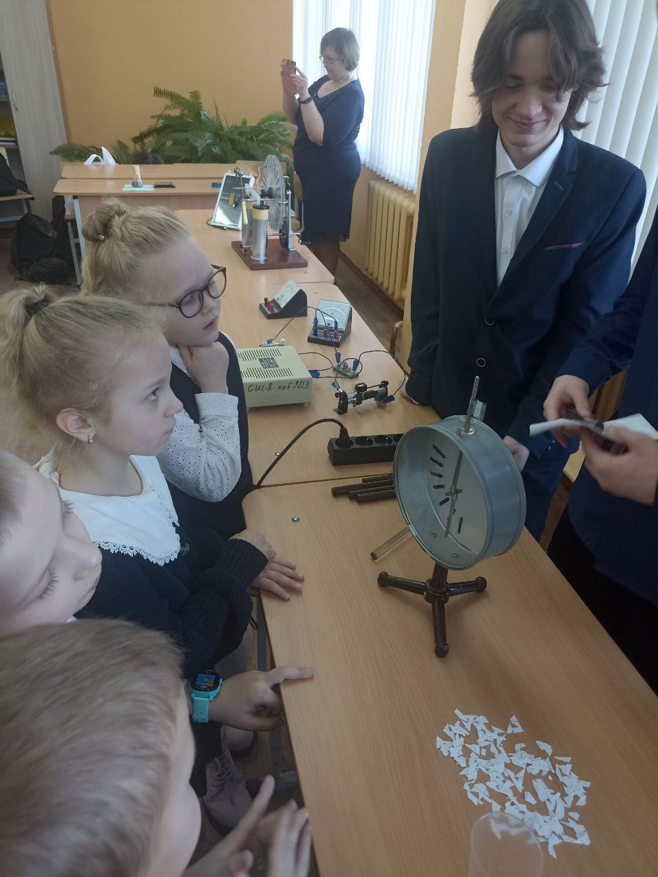 В рамках мероприятий, посвященных Всемирному дню инженерии, учащиеся 11 инженерного класса пригласили посетить "Физическую лабораторию'" учащихся 2 "А" класса.