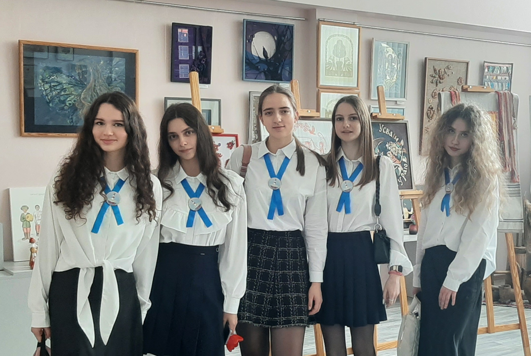 Голубая ленточка символизирует просторы океана Учительства. На просторах которого курсируют большие лайнеры, танкеры, фрегаты, парусники и небольшие суда. На небольшом исследовательском судне два года будут путешествовать учащиеся педагогического класса.