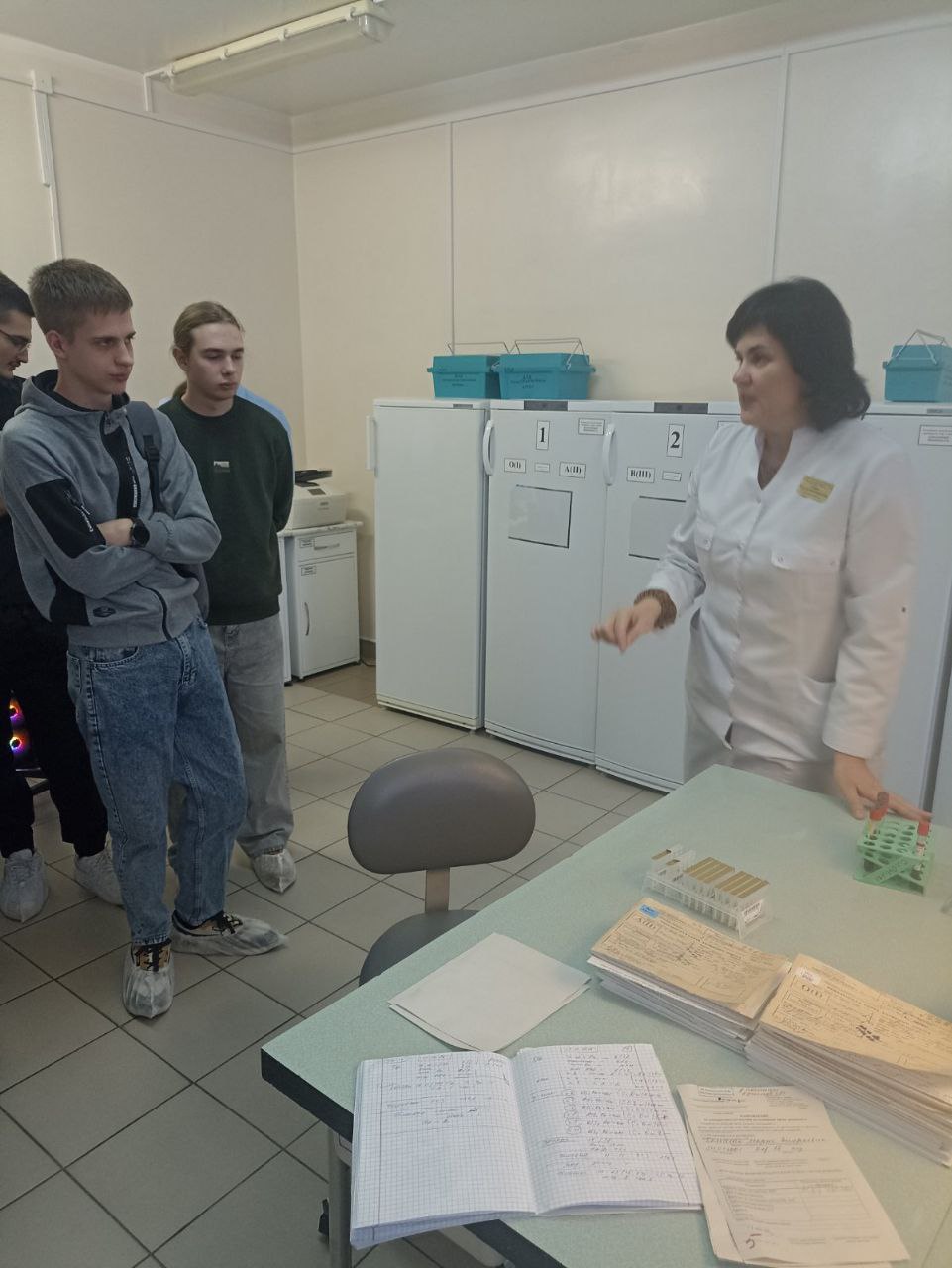 17.11 учащиеся 10а и 11б классов профильной инженерной направленности посетили областной центр трансфузиологии в г.Слониме. В ходе экскурсии учащиеся узнали, что центр трансфузиологии занимается заготовкой, хранением и переработкой донорской крови и ее компонентов, а также их безопасной трансфузией (переливанием) пациентам.
