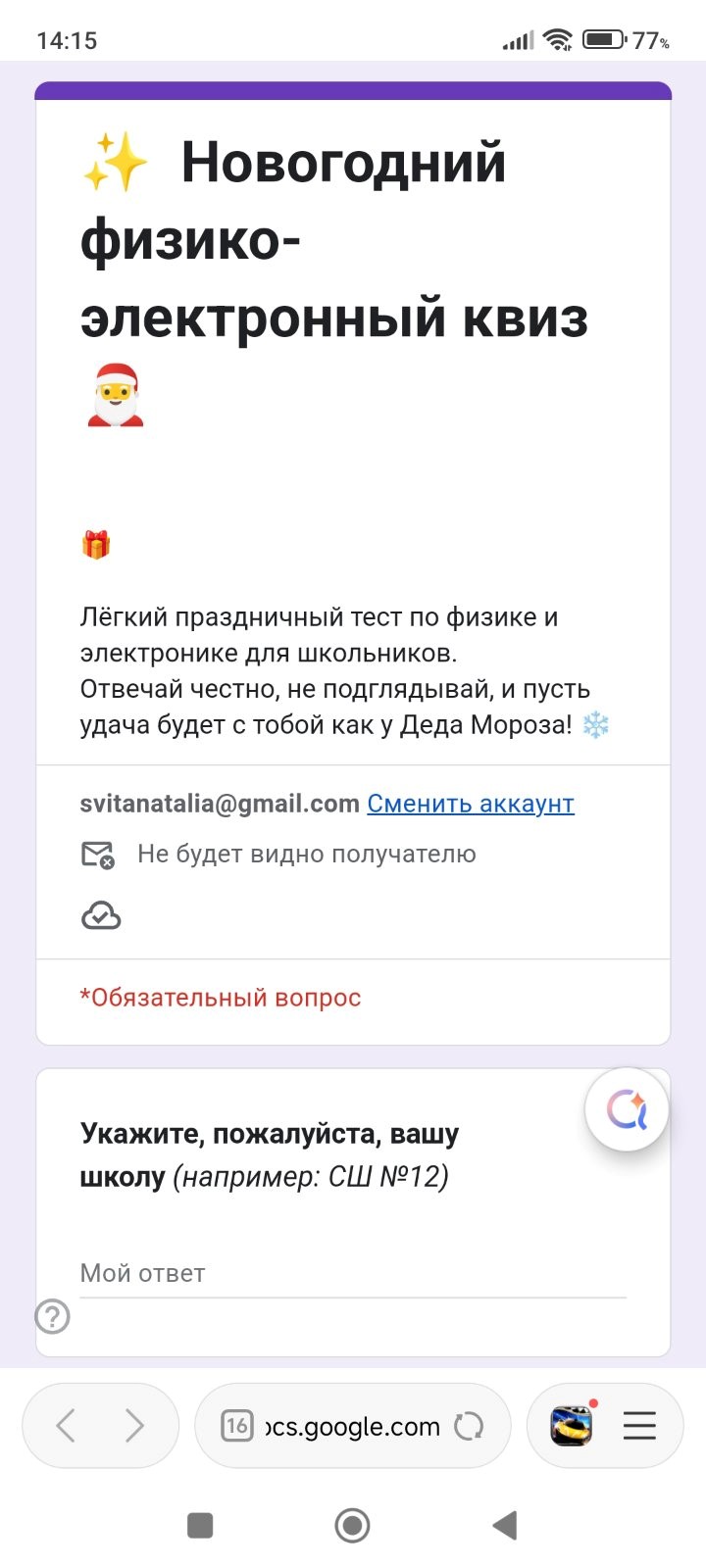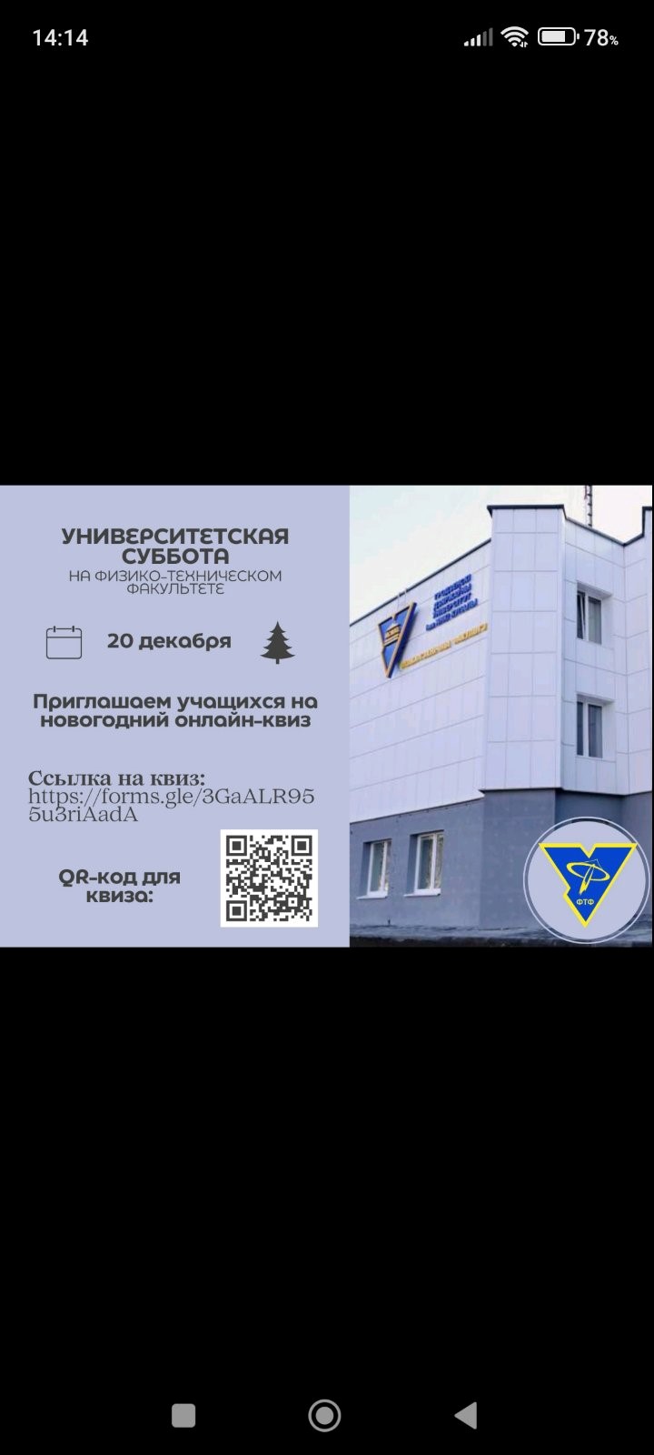 20 декабря 2025 года учащиеся инженерного 11 «Б» класса приняли участие в новогоднем онлайн-квизе, который проходил в рамках университетской субботы на физико-техническом факультете ГрГУ им. Я.Купалы. Все учащиеся успешно справились с заданиями теста.