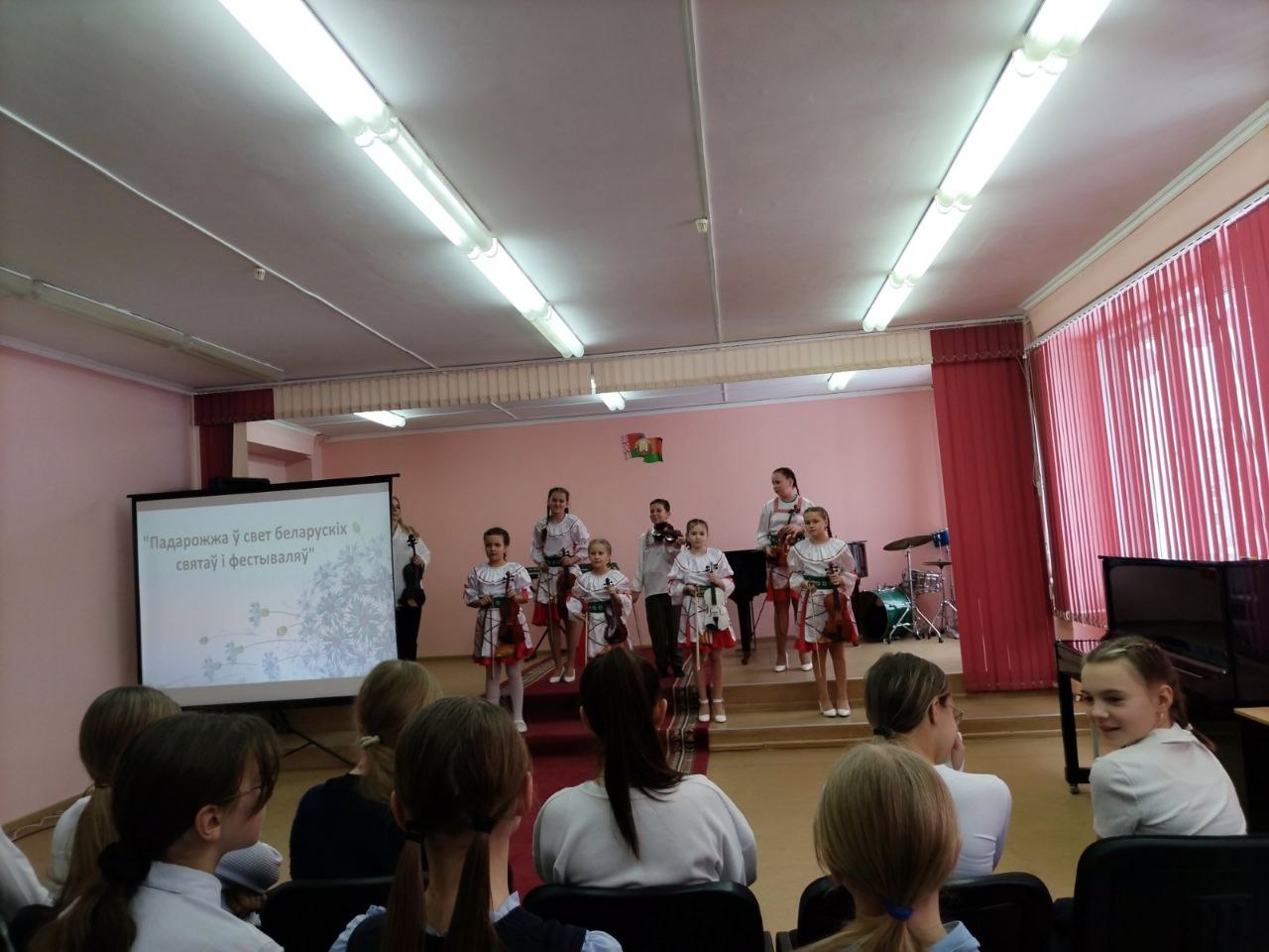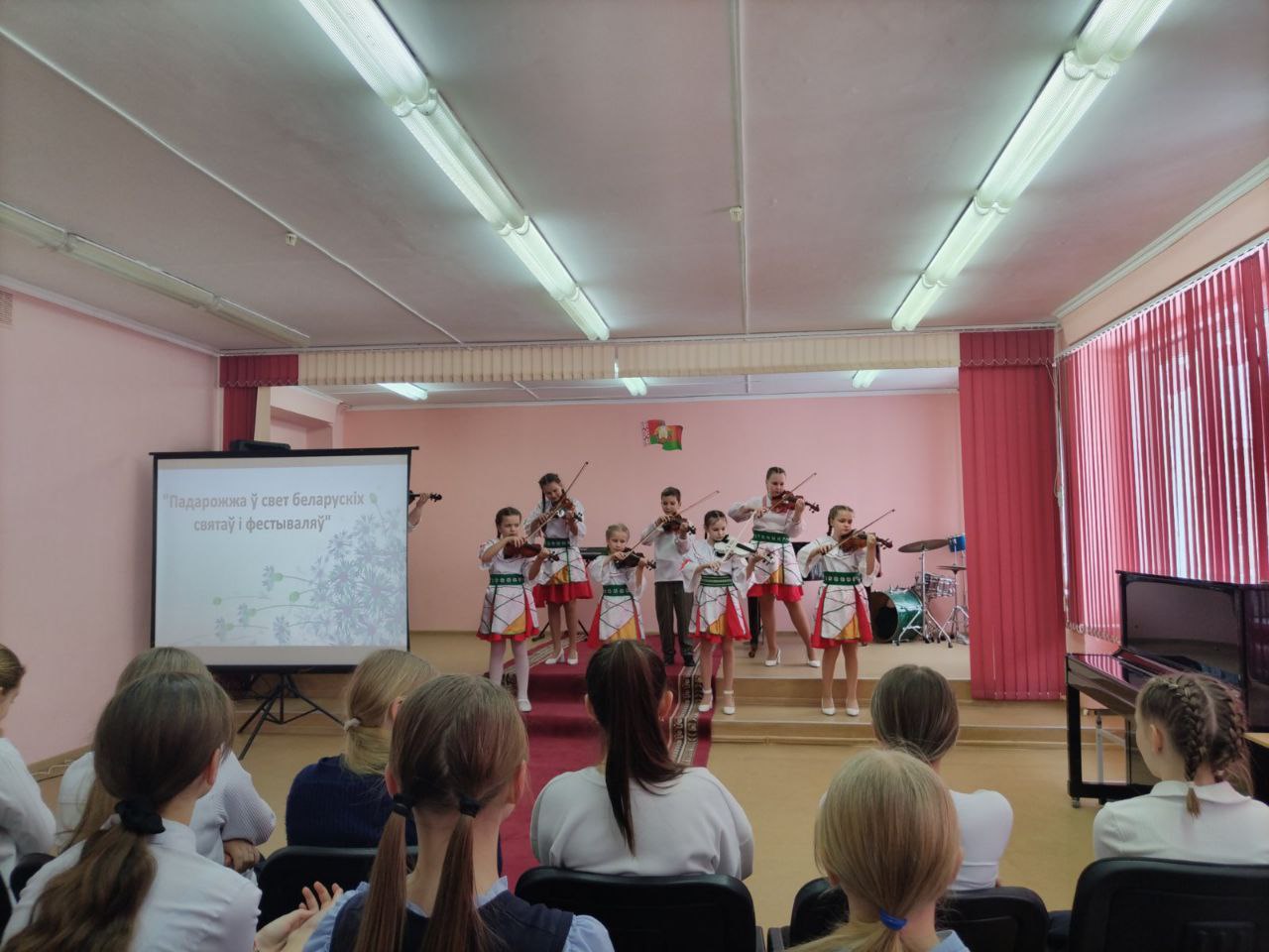 У рамках праекта «Кожная пятніца - роднае, сваё” для навучэнцаў шостых класаў прайшла прэзентацыя - канцэрт “ Падарожжа ў свет беларускіх святаў і фестываляў”. Але самае галоўнае – гэта музычная частка! Удзел вучняў-музыкантаў і яго кіраўнікоў Персіянцавай Л.У., Грышук В.І. зрабіў гэтае падарожжа незабыўным. Гучанне народных інструментаў, выкананне традыцыйных мелодый – усё гэта не проста суправаджала выступленне, а само па сабе было сапраўдным абрадам, які адкрываў сэрцы і душы. Гэтыя юныя таленты паказалі, што любоў да роднага слова і культуры жыве ў кожным з нас, асабліва калі яе так па- майстэрску падтрымліваюць настаўнікі. Гэта мерапрыемства стала цудоўным прыкладам таго, як можна спалучаць традыцыі і сучаснасць, як важна захоўваць свае карані і перадаваць іх наступным пакаленням. Усе вучні 6-х класаў атрымалі найлепшыя ўражанні і з нецярпеннем чакаюць новых такіх цудоўных «пятніц»!