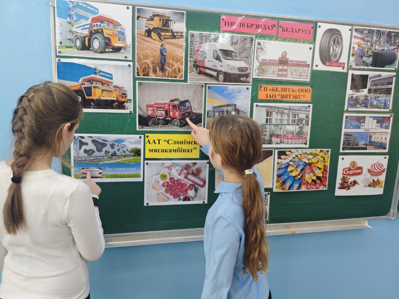 З мэтай папулярызацыя сярод вучняў эканамічных і культурных з'яў і дасягненняў нашай краіны, якія сталі яе сучаснымі сімваламі – брэндамі, у 5”Б” класе ДУА «Сярэдняя школа № 8 г.Слоніма” прайшла адпаведная тэматычная інфармацыйная гадзіна. Вучні ўзгадалі брэнды, якімі ганарыцца кожны беларус: ад магутных “МАЗаў”да смачных прысмакаў, даведаліся пра цікавыя факты з гісторыі развіцця вытворчасці беларускіх тавараў.