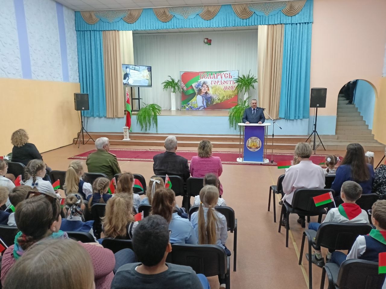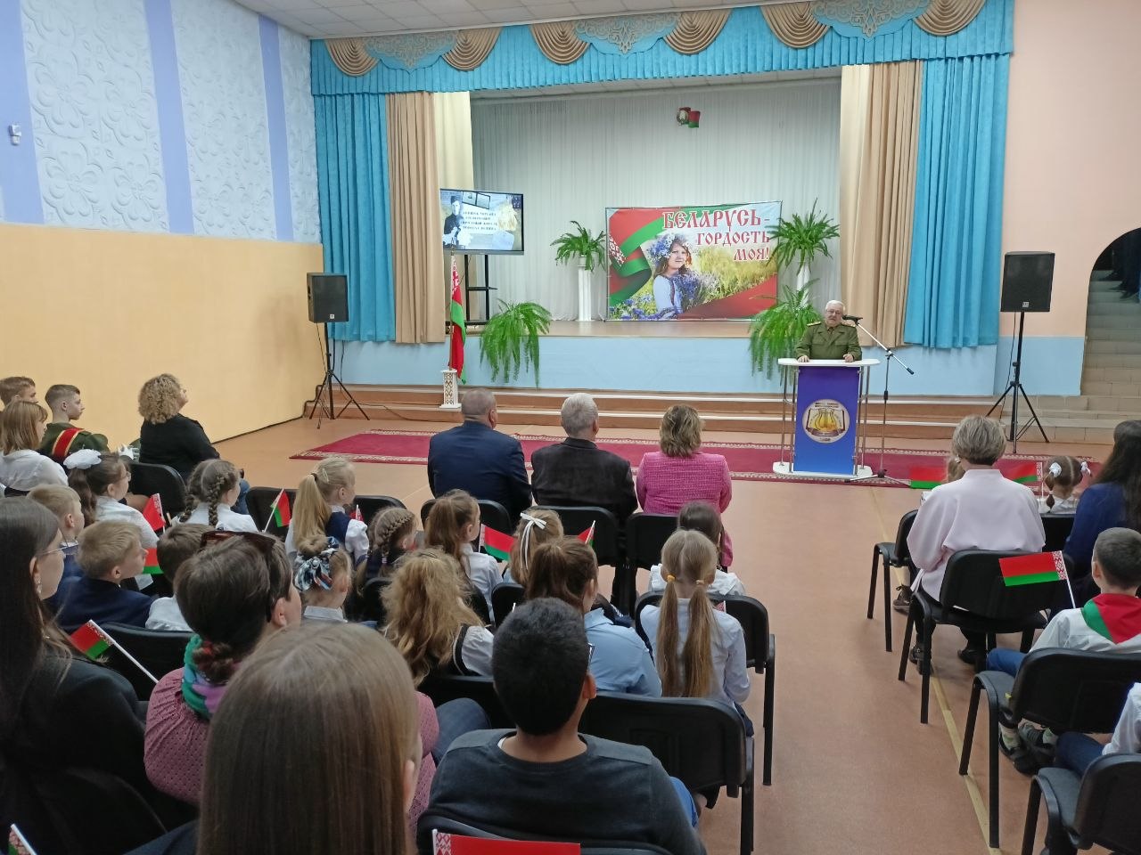 Хвесько Вячеслав Алексеевич, пожелал успехов в учебе, верных друзей и чтобы небо над нашей головой всегда было мирным. Призвал учащихся быть хранителями истории. Не просто выучить даты из учебника, а спросить у своих бабушек и дедушек, у соседей — что помнят они и передавать эту память своим детям.