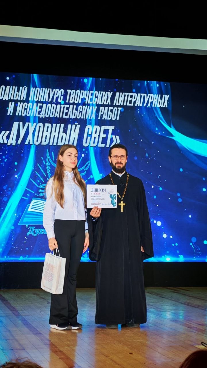 По результатам Международного конкурса исследовательских работ "Духовный свет", организованным БГУ при поддержке БПЦ, российского исторического общества и фонда "История Отечества" из более чем 550 творческих и исследовательских работ, работа Ботько Дарьи, учащейся 10 класса, завоевала Диплом II степени. (учитель Парфенчик Е.В.)